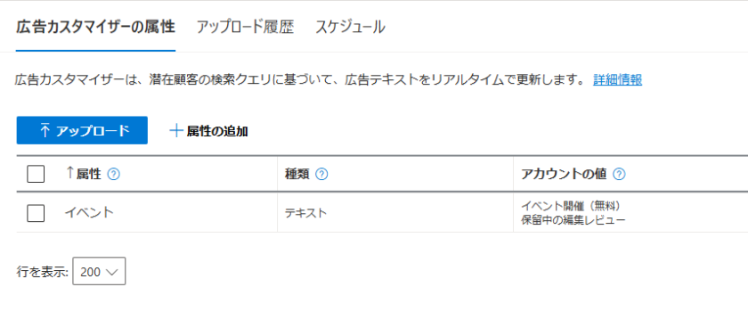変更を適用後、広告管理画面に広告カスタマイザフィードで作成した広告カスタマイザーの属性の情報が確認できます。