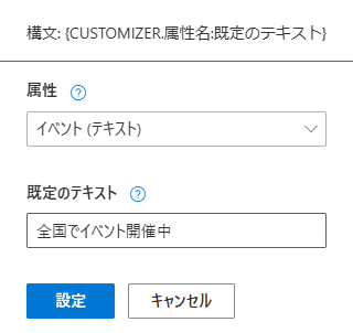たとえば、イベントの開催情報を広告に入れたい場合、上記のように広告カスタマイザフィードを設定します。