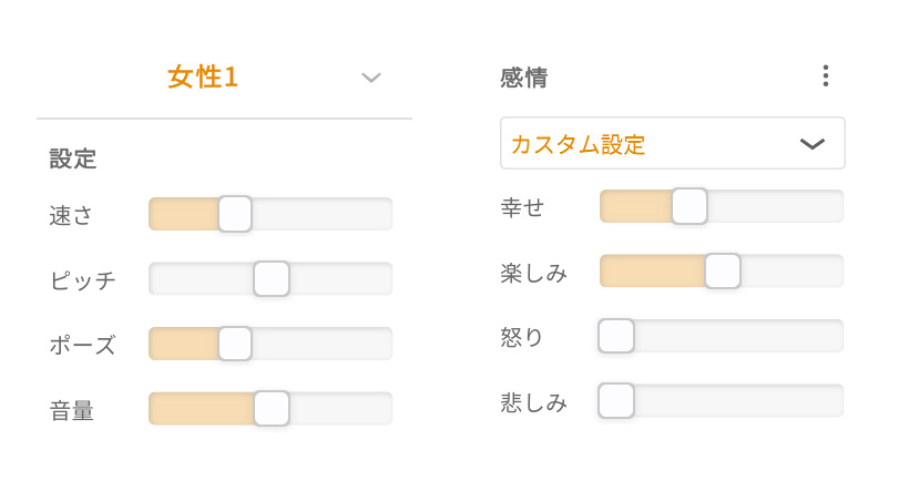 STEP3:速さやピッチ、ポーズ、音量など声の質感を調整