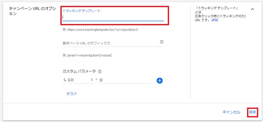 設定するトラッキングテンプレート配下の広告で使用するパラメータが統一されているならば、{lpurl}のパラメータを使用することで管理も非常に楽になるでしょう。