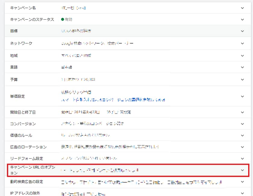 3.[キャンペーン URL のオプション]を開く