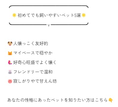 また、応用系として囲みや吹き出しなどの装飾をつけることで目に留まる工夫を加えることもできます。