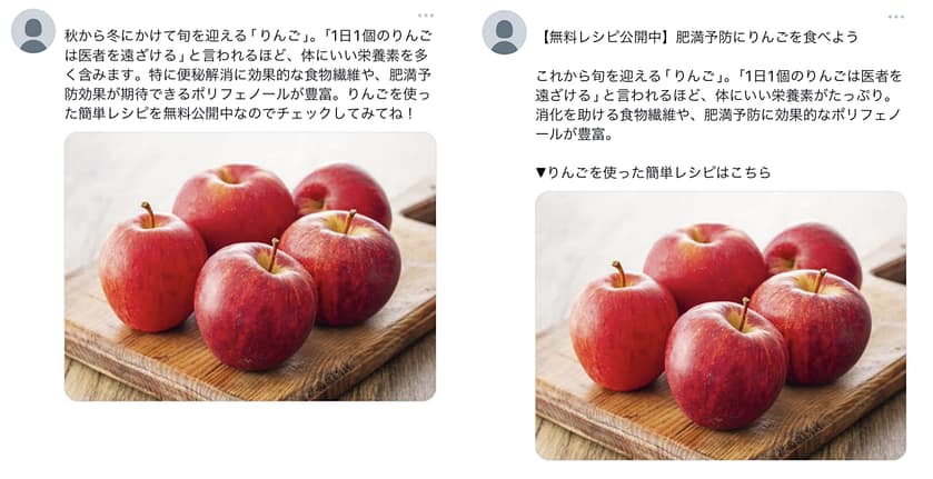 「何を言うのか」はユーザーの反応が大きく動く大事なポイントです。1つのポスト文に対して欲張って情報を詰め込むのではなく、ここでは伝えたいことを絞り、どの焦点がユーザーの態度を変容させるのか検証を重ねていくのがよいでしょう。