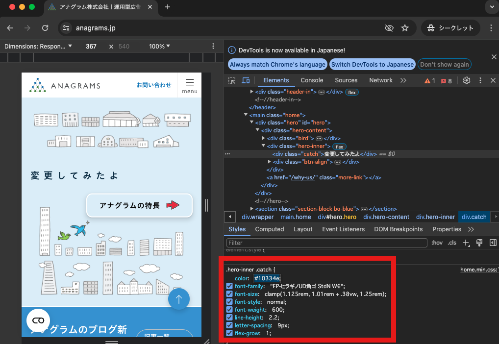 HTML・CSSのソースコードを確認するには、Chromeの検証ツール(デベロッパーツール)が便利ですので紹介します。