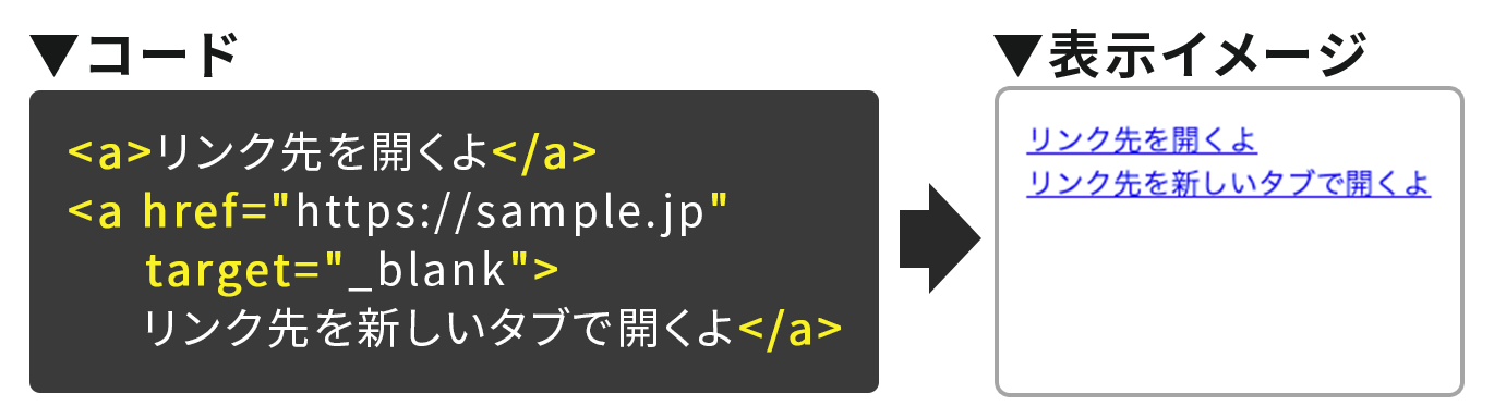 リンクを貼りたい文言をaタグで囲い、herf属性でリンクを指定します。