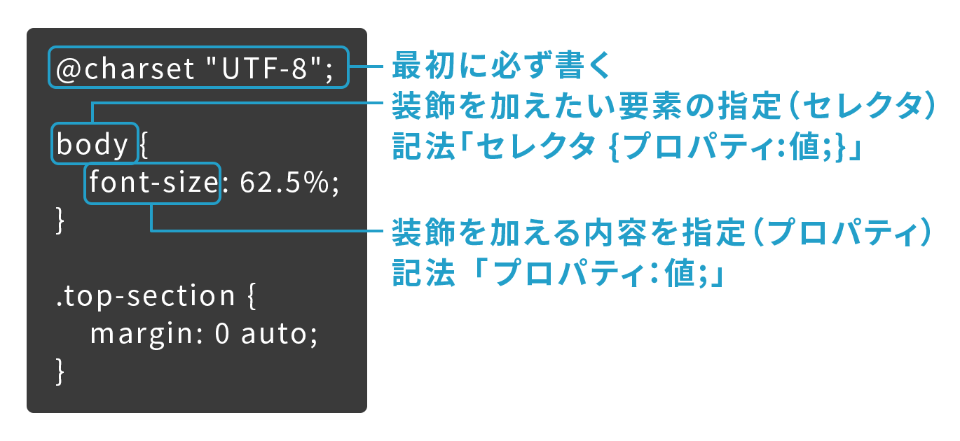 CSSも、HTMLと同じく、文字化けを防ぐために文字コードを指定する必要があります。