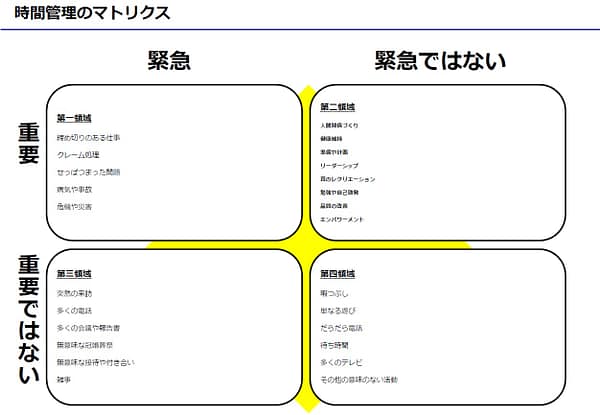 そんな時にこの奉太郎のこのセリフを思い出しましょう。まずは、「やらなくてもいいこと」「やらなければいけないこと」の見極めが大事です。名著『7つの習慣』内の時間管理マトリクスで仕分けしていってもいいかもしれません。このように手当たり次第にタスクに取り掛かる前に、まずはタスクの整理をしていきましょう。