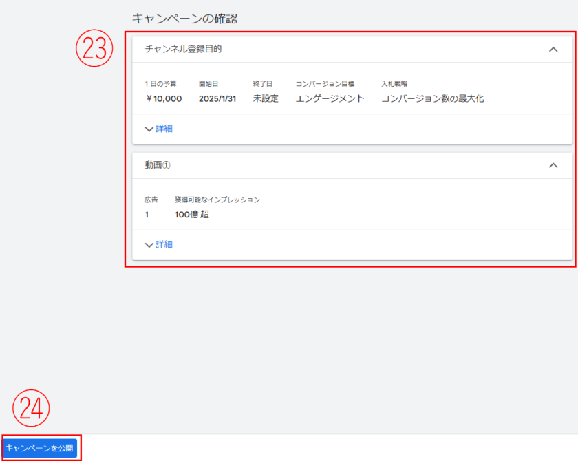 ㉔問題がなければ、キャンペーンを公開をクリックし、設定完了です。