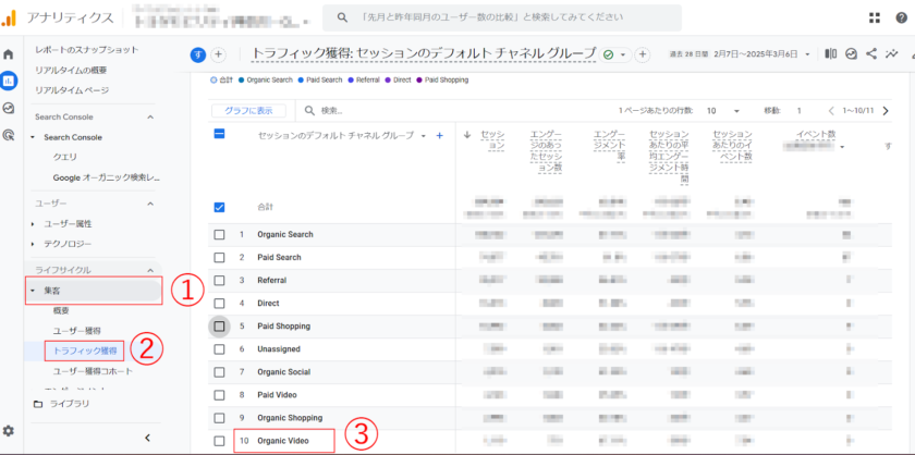 GA4でのYouTube経由のサイト流入(Organic Video)