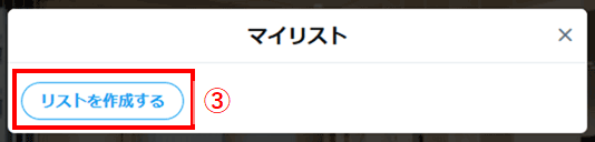 マイリストが表示されるので③「リストを作成する」をクリック。
