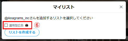 リストを保存したら、リスト一覧画面に戻るので、⑥追加したいリストにチェックを入れて完了です。
