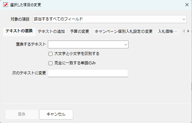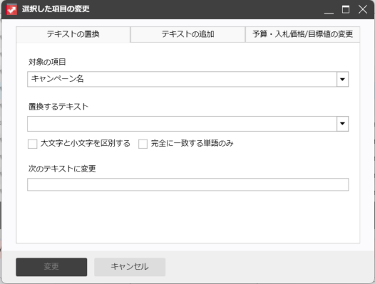 多くの広告文などを一括で大量に変更したい場合に非常に便利です。