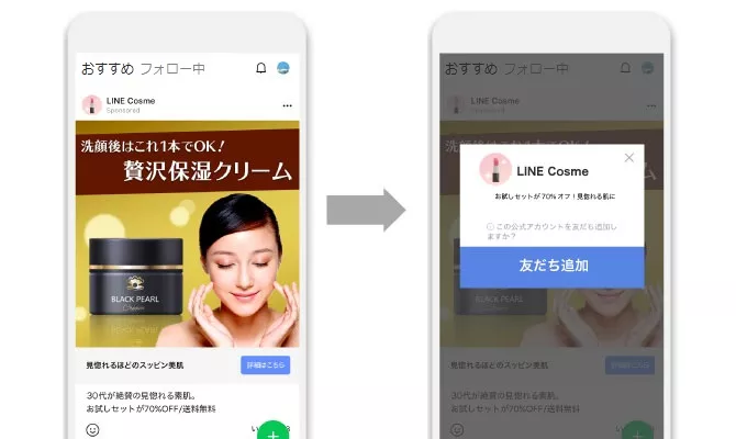 LINE広告の強みは、LINEという生活インフラに近いアプリの中で広告が配信できることにあります。ユーザーにとって「広告を見る→LINEを開く→追加する」という一連の行動が非常に自然でスムーズです。