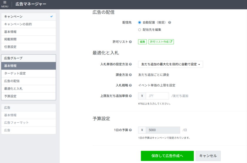 一方で、細かなターゲティングやクリエイティブのバリエーションを持たせたい場合は、LINE広告管理画面のほうが柔軟に対応できます。