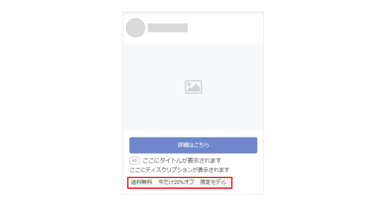 ラベルに入力できる文字数は限られますが、「送料無料」であったり「女性用」、「Wifiあり」などユーザーがサービスや商品を選ぶ際に気になる情報など、工夫次第で広告をより魅力的にアピールできる可能性があります。