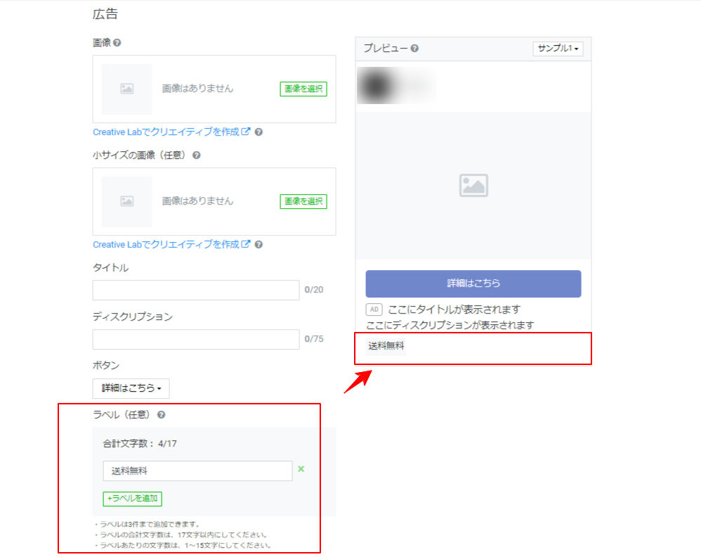 広告を作成する際に「広告」セクションの「ラベル(任意)」の項目より設定ができます。