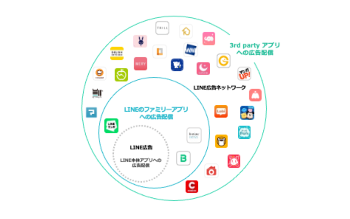 | LINE広告ネットワーク | LINEおよびLINEサービスに加え、幅広いジャンルの3rd partyアプリの広告配信面 |