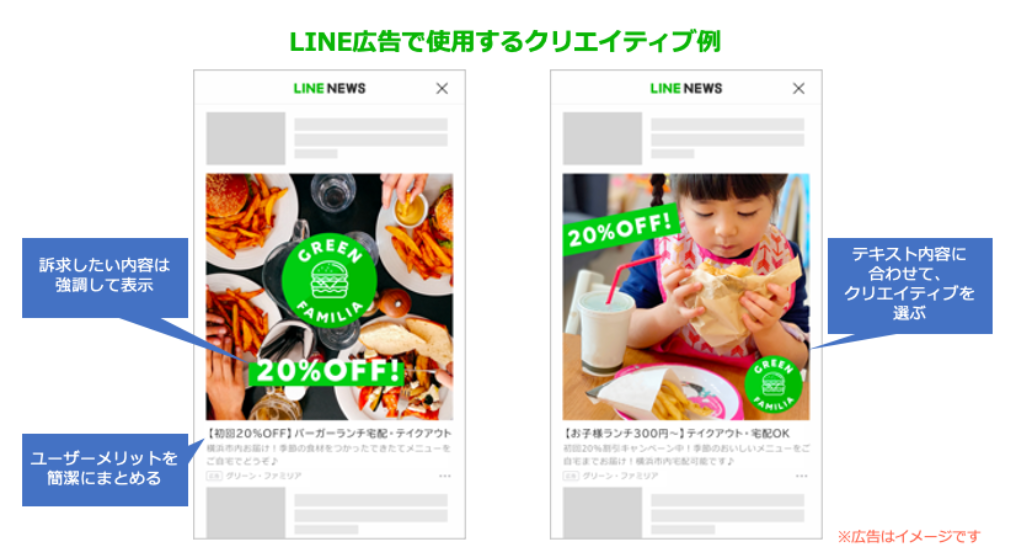 参考:【公式】LINE広告の効果を高めるクリエイティブのコツ|LINE for Business