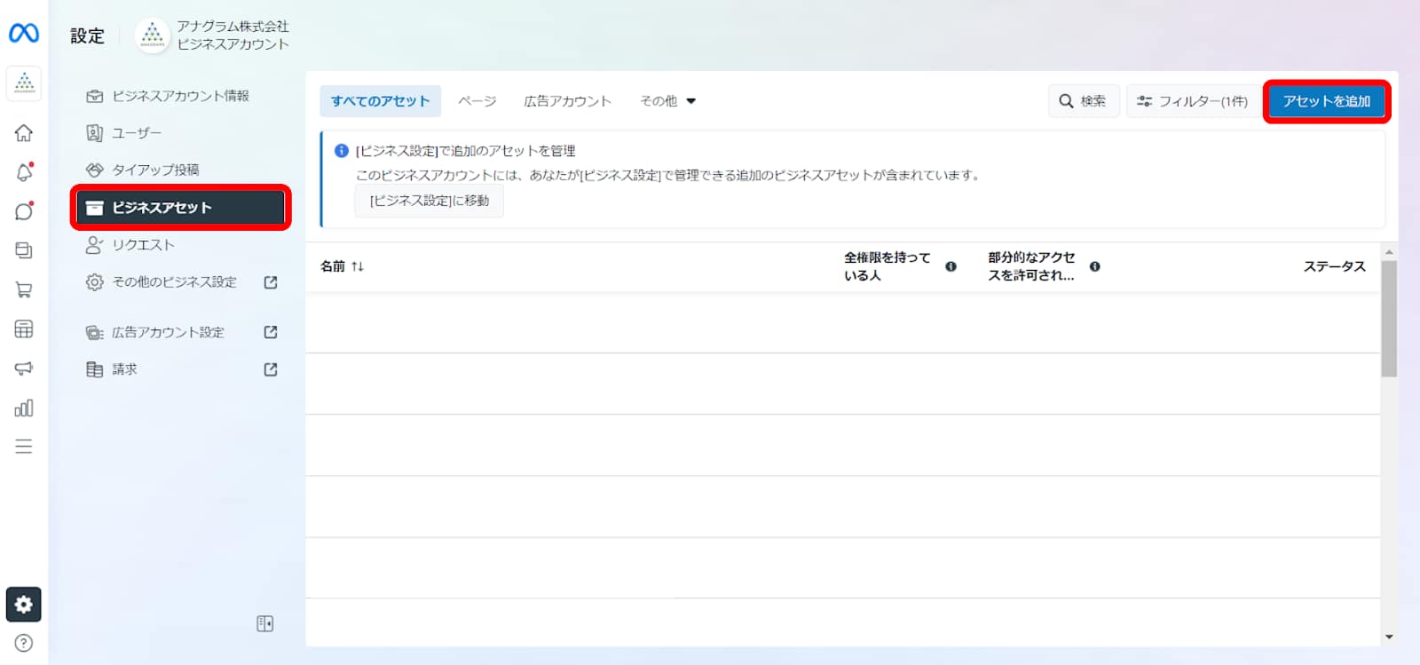 「1.自社の広告アカウントをMeta Business Suiteに連携する方法」の手順④まで進みます。