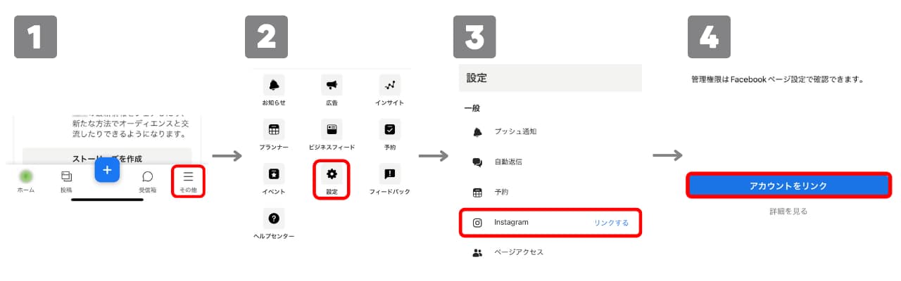 参考:Meta Business SuiteモバイルアプリでInstagramアカウントをリンクする | Metaビジネスヘルプセンター