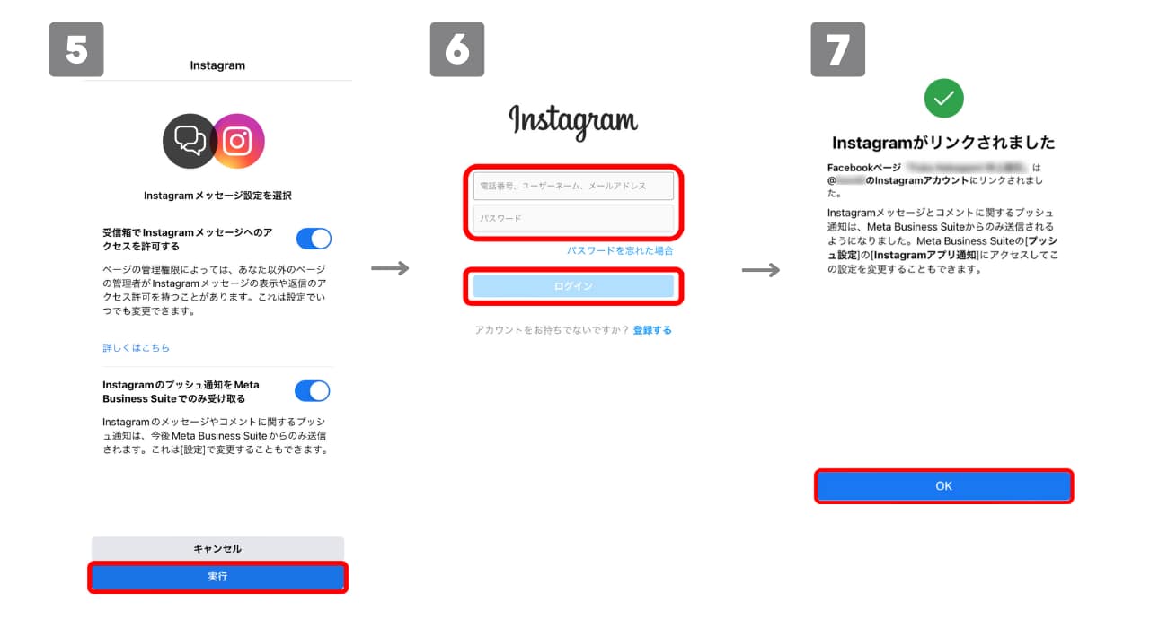 ⑤Instagramメッセージの設定を任意選択し、「実行」をタップします。