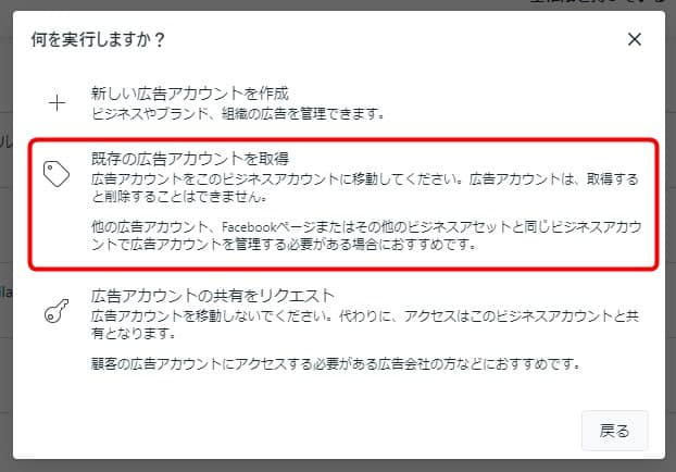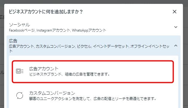インハウス運用など、自社で管理している広告アカウントをMeta Business Suiteに連携する手順を紹介します。