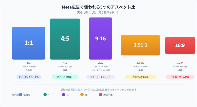 Meta広告では、以下の5種類のアスペクト比が公式に推奨されています。