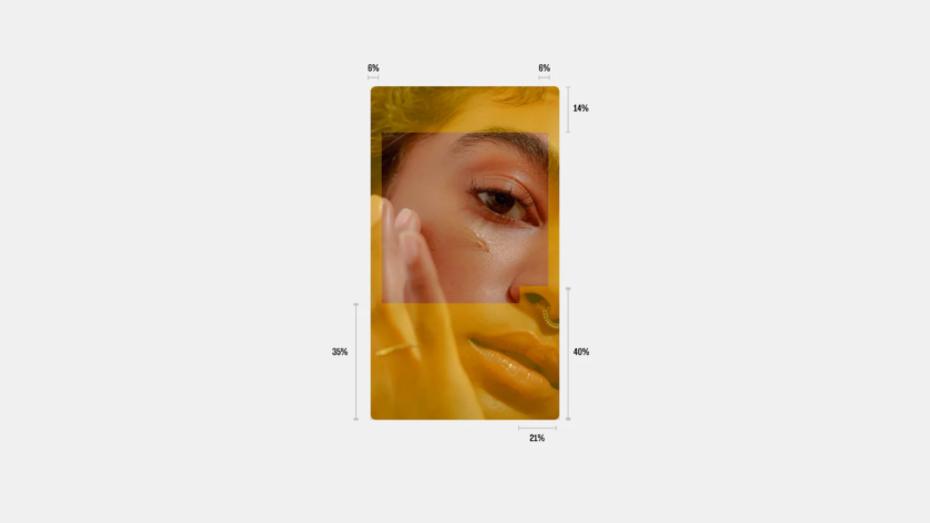 ズームが発動した場合、クリエイティブの左右端がクロップされます。テキスト、ロゴ、CTAなどの重要な要素は、キャンバスの水平方向中央80%以内に配置するのが安全です。端までめいっぱい使ったデザインは避けましょう。