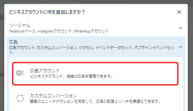 ④「広告アカウント」を選択します。