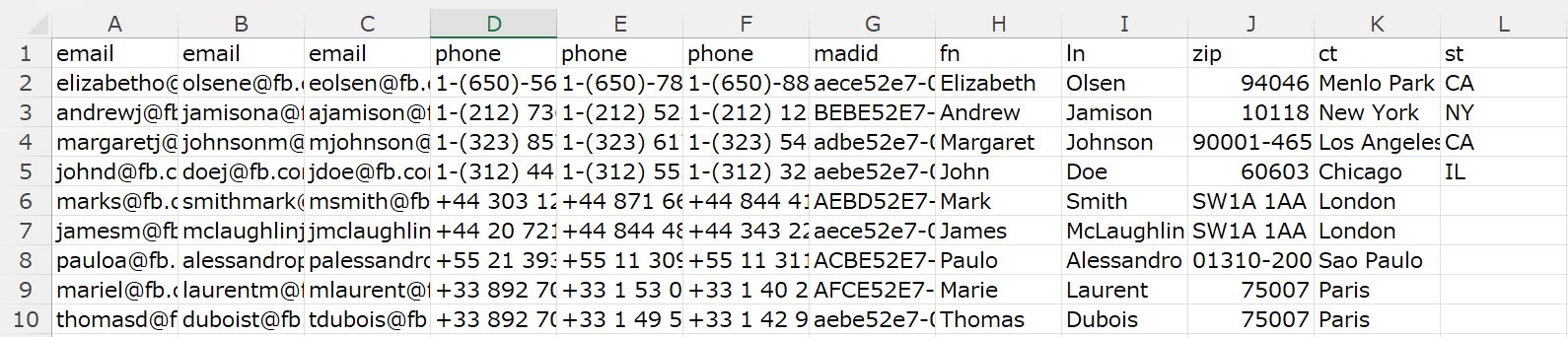 参考:How to Format a Customer List When Creating a Custom Audience | Meta Business Help Center