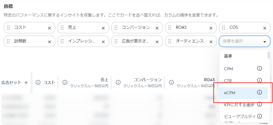 「eCPM」は、インプレッション1,000回あたりの費用を指します。