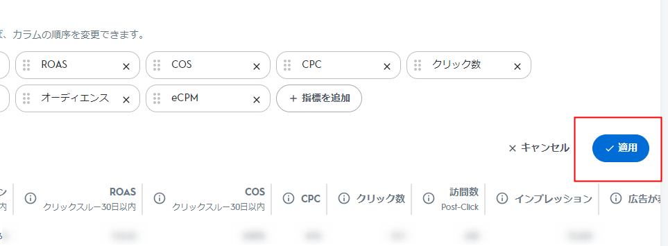 ⑤指標が反映されているのを確認して「適応」をクリックします。