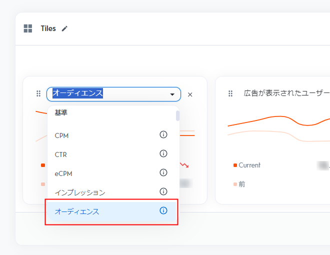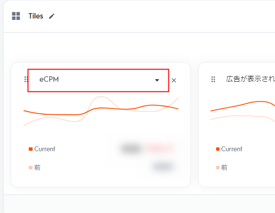 ②レポートの編集画面に切り替わるので、「Tiles」で表示されている指標名をクリックします