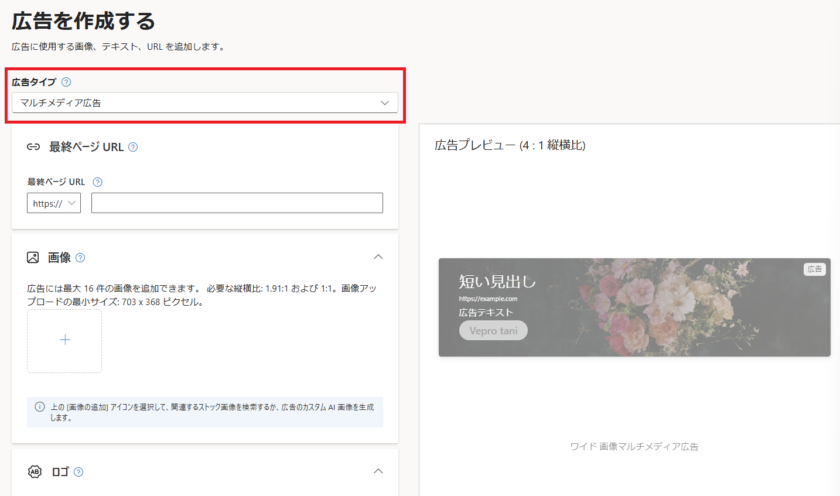 前提として、マルチメディア広告はキャンペーンタイプではなく、広告タイプの1つに該当します。