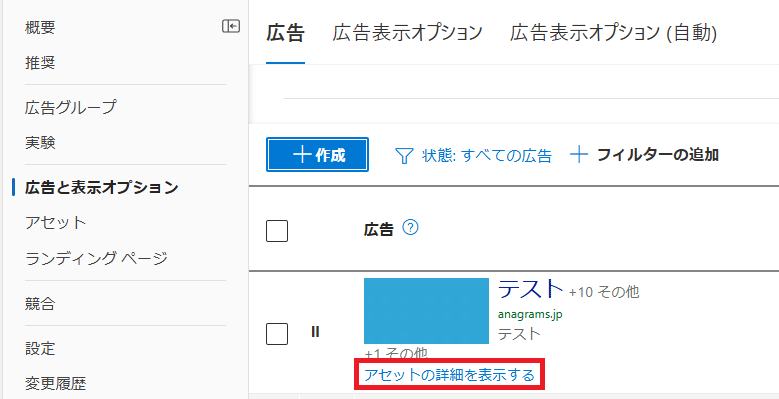 2. 広告の下にある [アセットの詳細の表示] を選択します。