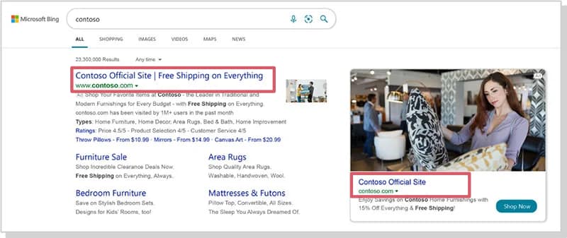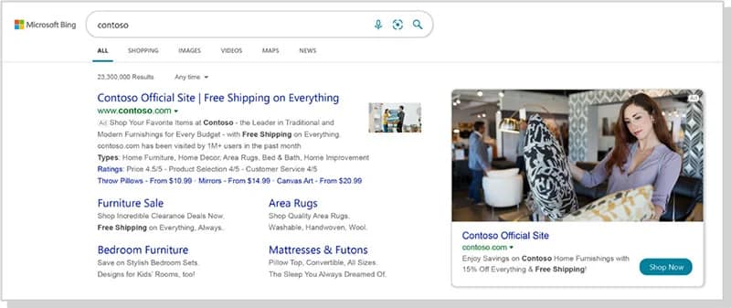 Microsoft マルチメディア広告とは、Microsoftの検索エンジン「Bing」のパソコンとタブレット端末の検索結果ページに表示される画像とテキストを組み合わせた広告フォーマットです。