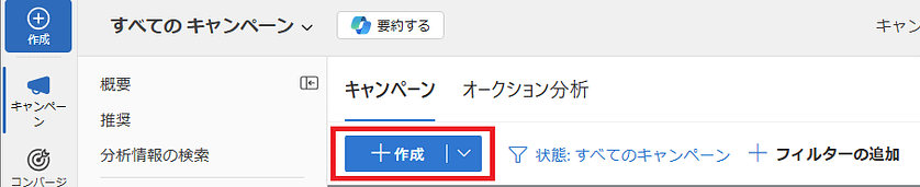 1.管理画面の左側メニューで [キャンペーン]を選び、[作成] をクリックします。