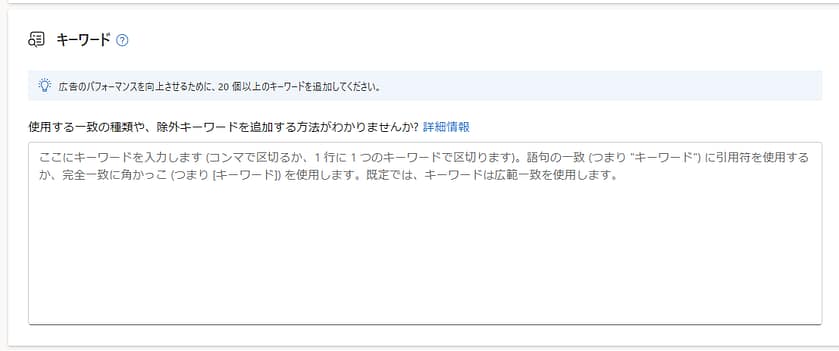 | 説明文 | 〇 | 半角90文字以内 | 広告配置に応じて、長い広告見出しもしくは短い広告見出しの下、または横に表示されます。 |