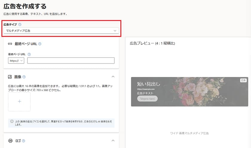 参考:マルチメディア広告 - Microsoft Advertising ヘルプセンター