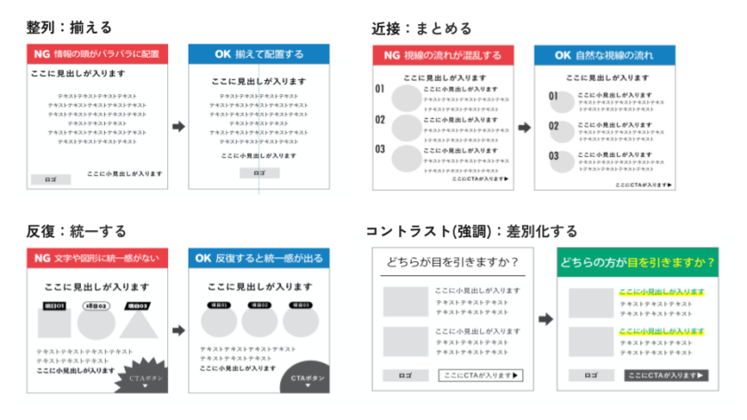 このとき、「デザインの4原則」や「視線誘導」の観点で違和感がないかも見ていきます。