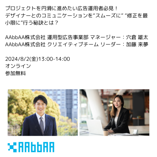 - セミナーのテーマ:広告運用者向け、デザイナーと円滑に仕事を進めるポイント