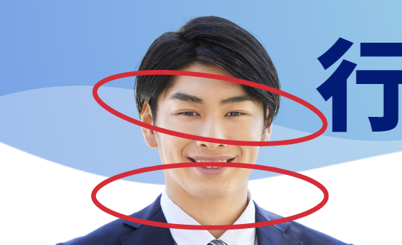写真の後ろに何かオブジェクトを配置する際は、「目刺し」や「首切り」といった配置となり人が不安を感じやすいためNGですのでレイアウトの際は配慮したいです。