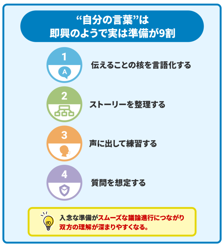 ここからは、「自分の言葉で伝える力」を高めるために、私が実践してきた4つのステップをご紹介します。