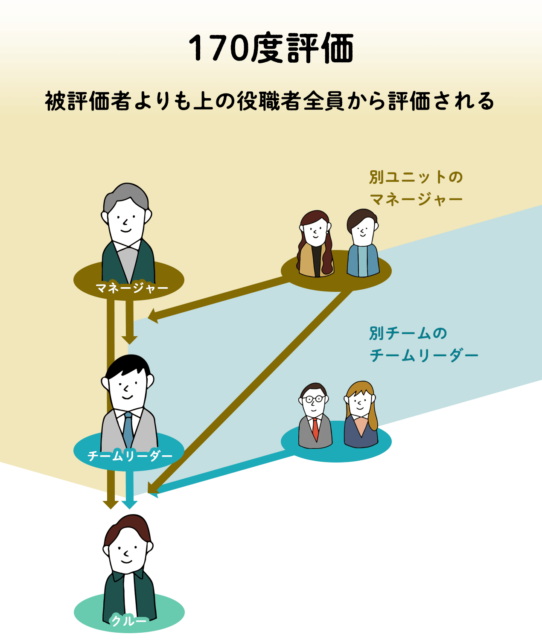 そのため、アナグラムではちょうどよい塩梅として「170度評価(仮)」を実施しています。これは、自分よりもレイヤーが上の人全員で評価を行うという制度です。