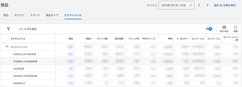 メンズ/レディース、価格帯など任意の切り分けで成果を比較したい場合は、カスタムラベルを活用して事前にフィード内へデータ登録しましょう。