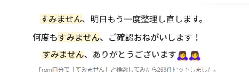 そんな経験はありませんか?私がまさにそうで、社内チャットを振り返ると「すみません」を含む発言は1年半でなんと263件……。