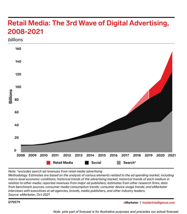 そして、2020年代の今、第3の大きな波として「リテールメディア」が台頭している、とeMarketer社の主席アナリストであるアンドリュー・リップスマン氏は主張しています。
