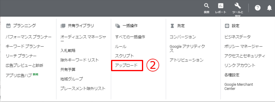 まずは、プレースメント除外リストを作成します。ファイルは以下の方法でアップロドしたものが利用できます。