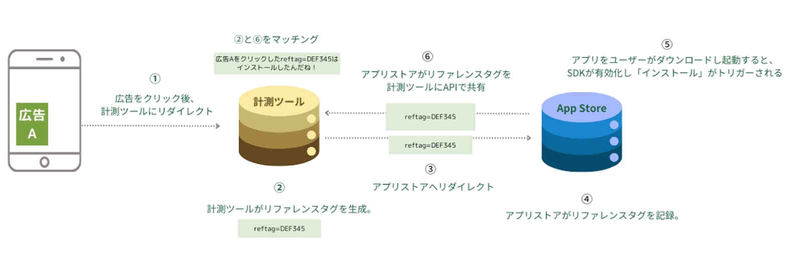 - 計測ツールがリファレンスタグと呼ばれる識別子を生成し、計測用リンクに追加する。