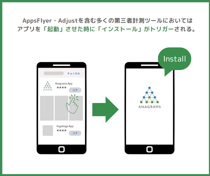 アプリストアでインストールして起動せずに離脱した場合は、インストールとみなされない点には注意が必要です。